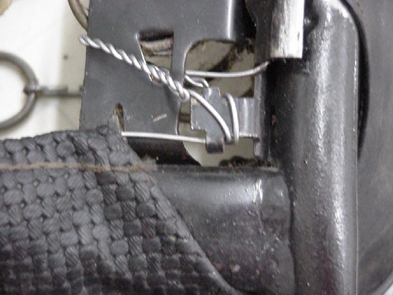 Once finished it should look something like this (see above). I know it is not completely original but the cross-like piece near the corner is excellent for securing the wire (twist it round it once, just like when you are sailing..) But if you wind the wire more than once around this element than the seat might not slide freely in its rails once you are done.. (this can be encountered by bending it a little inwards.) This segment is intended for mounting the retaining spring I mentioned at the start. I did the job on my own and only had two hands, if you have a helper ready here you can duplicate the stock "stitch".