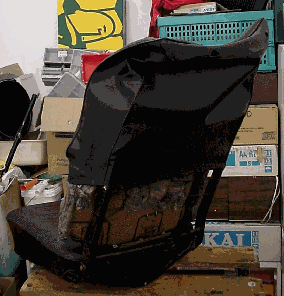 The major part of the budget is taken up by the new paddings, provided your seat covers are in decent shape (as mine where). I paid for my TMI repros $100/including shipping. Nice thing is, you dont need any special tools for this job. What is imperative though, is an unburstable good mood!! You are gonna need it. Also a reminder: it is better to leave the seat alone for the moment if things do not work out. Take your time, nobody is saying this is a rush job! Best results are obtained with patience. Do not imagine you need any secret experience for this; I have a nine to five desk job and learned my tricks by lots of reading and trying (okee, I am in my 12th year now..). This piece of info is meant to clarify how I tackled the job and help likeminded Loaf-lovers ("pano-liefhebbers" in Dutch) around the world. Oh, and dont mind the mess in the back of the pictures. I need to organize my garage.. I know.