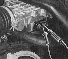 - Connect ohmmeter to terminals 6 and 9 on intake air sensor (specified