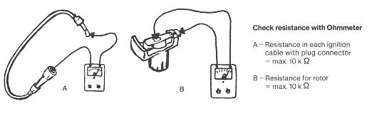 ignition cables, plug connectors and rotor with ohmmeter