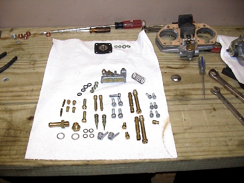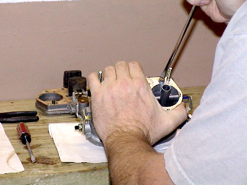 If your carburetors have the cold start valves on them, remove them. When you put it back together, you can either use blockoff plates or just put these back on. I'd recommend block off plates if you can get them, since these aren't used on the VW engine, unless you are a masochist.