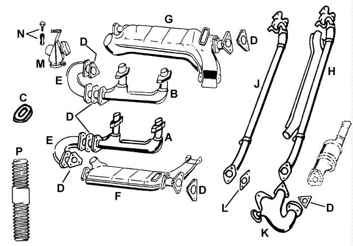 | F. | 025-251-261 | Exhaust Gasket, Right Heater Box to Crossover Pipe | |